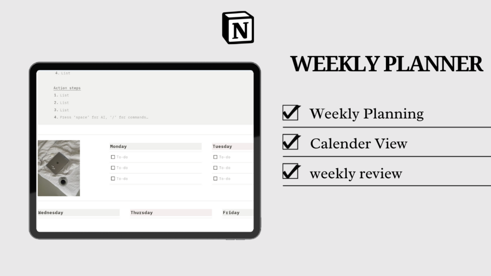 Weekly Planner - a simple and minimalistic notion template that helps you be more organized.